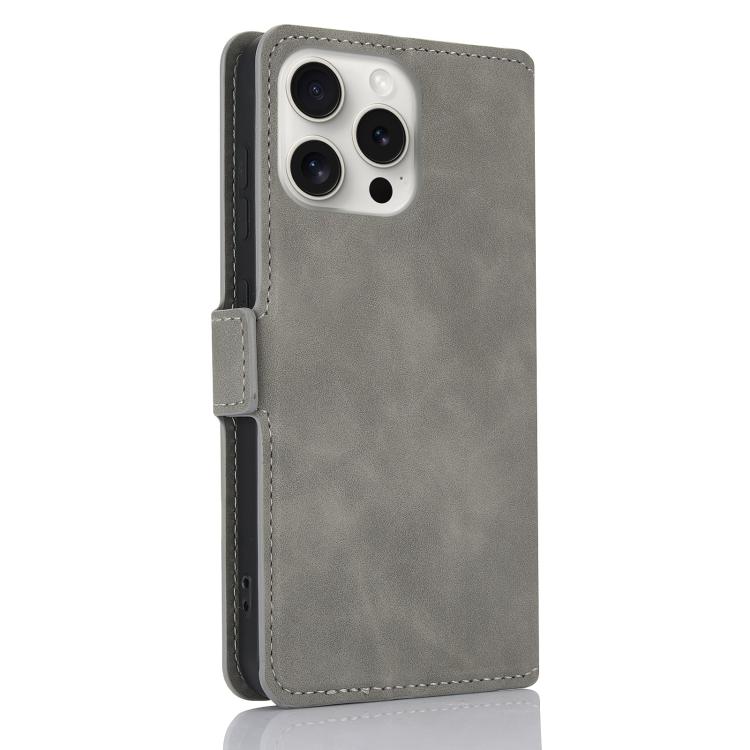 Funda de Cuero iPhone 13 Pro Relieve Mariposa y Flor Amor Ensueño (Gris)
