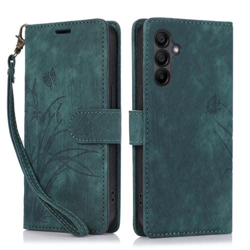 Funda de Cuero Samsung Galaxy A16 5G Relieve Mariposa Orquídea (Verde)