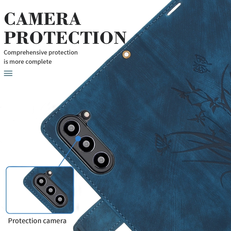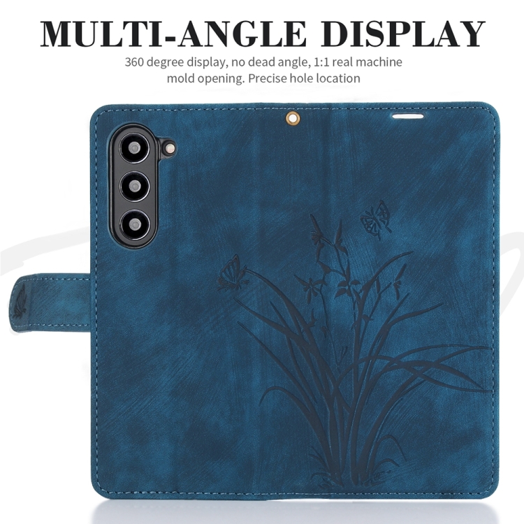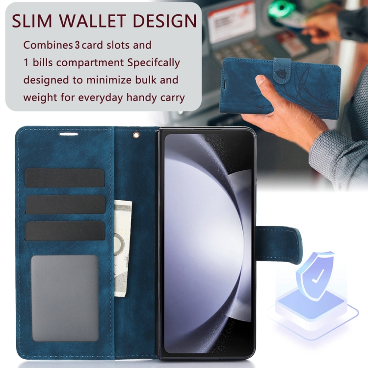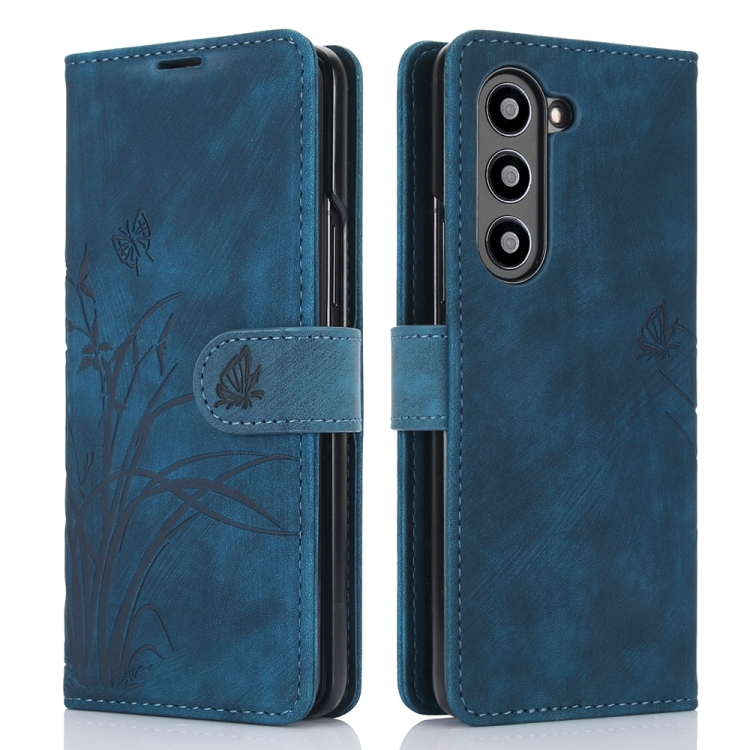 Funda Cuero Samsung Galaxy Z Fold6 Relieve Mariposa Orquídea (Azul)