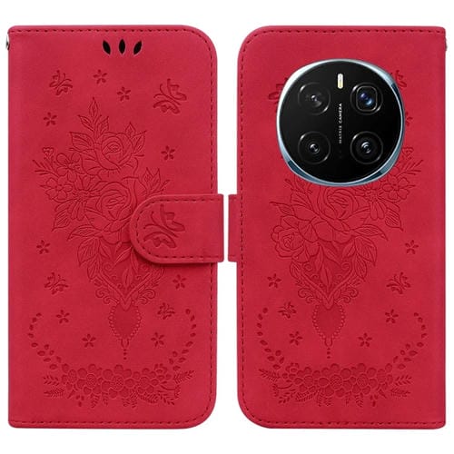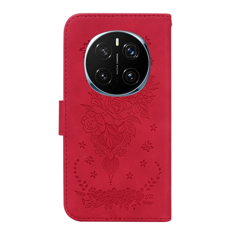 Funda de Cuero con Relieve Mariposa y Rosa para Honor Magic7 Pro (Roja)