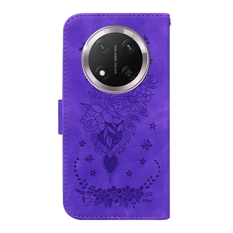 Funda de Cuero con Relieve Mariposa y Rosa para Honor X9C (Morado)