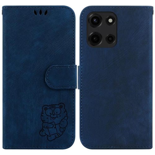 Funda de Cuero con Relieve de Tigre para Motorola Moto G 5G (2025) (Azul Oscuro)