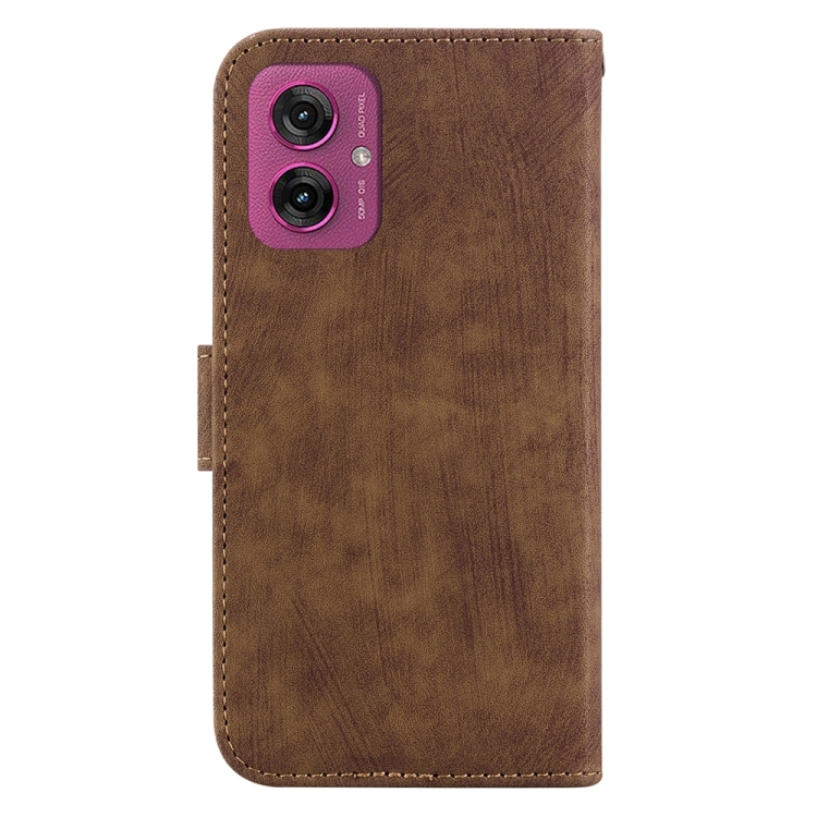 Funda de Cuero con Relieve de Tigre para Motorola Moto G55 (Marrón)