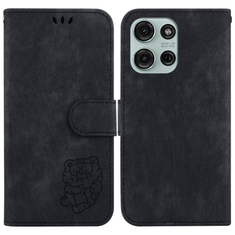 Funda de Cuero con Relieve de Tigre para Motorola Moto G75 5G (Negro)