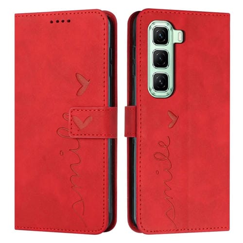 Funda de Cuero con Relieve Corazón para Infinix Hot 50 4G (Rojo)