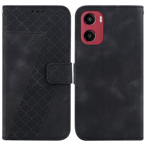 Funda de Cuero con Relieve en Forma de Siete para Motorola Moto G05/E15 (Negra)