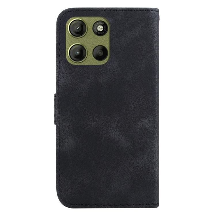 Funda de Cuero con Relieve en Forma de Siete para Motorola Moto G15 (Negra)