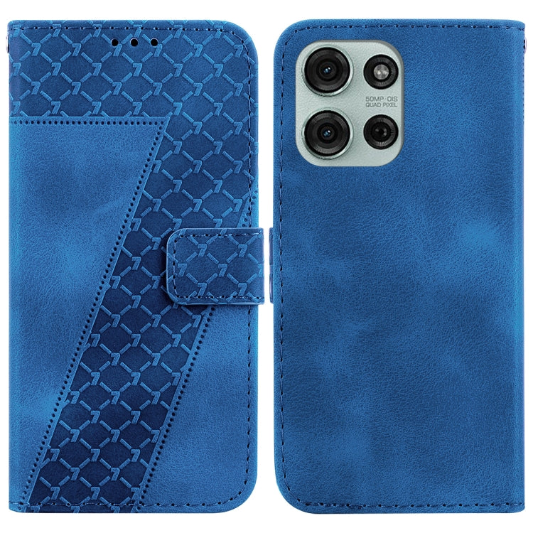 Funda de Cuero con Relieve en Forma de Siete para Motorola Moto G75 5G (Azul)