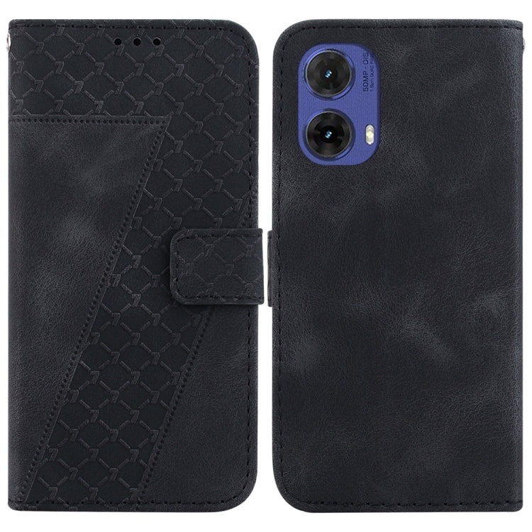 Funda de Cuero con Relieve en Forma de Siete para Motorola Moto G85 (Negra)