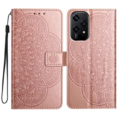 Funda de Cuero con Relieve Floral para Honor 200 Lite (Oro Rosa)