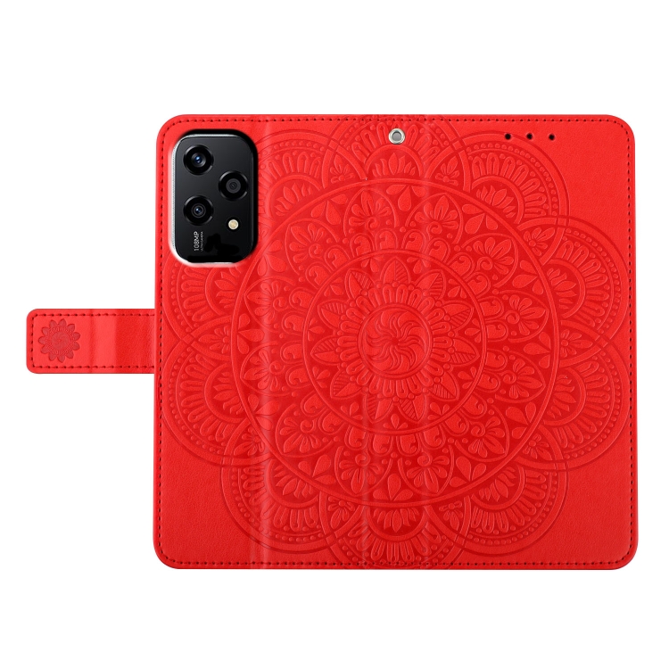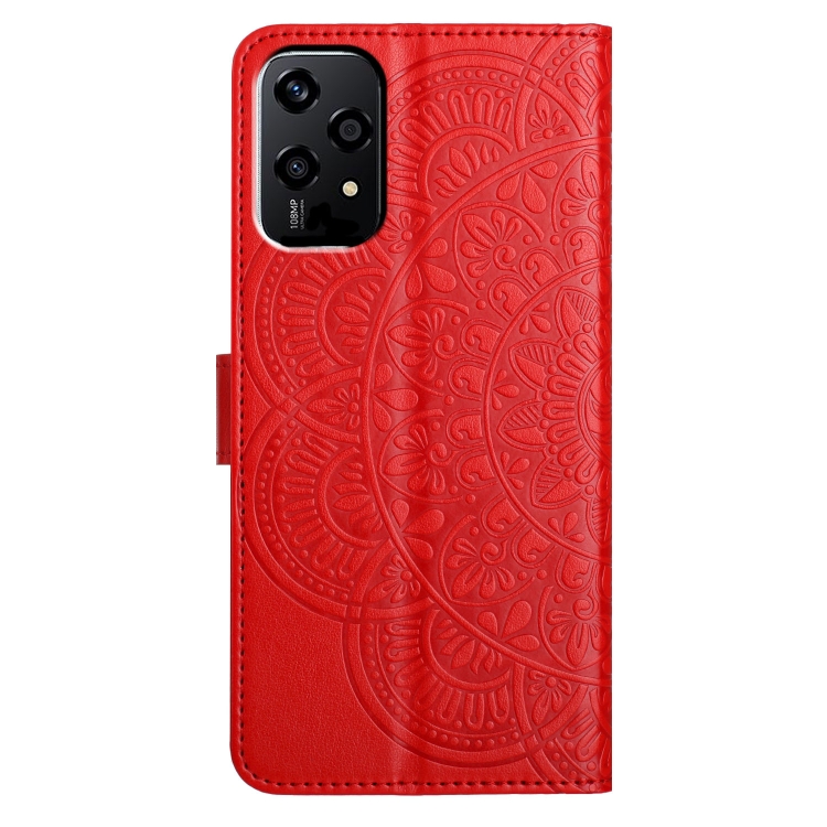 Funda de Cuero con Relieve Floral para Honor 200 Lite (Roja)