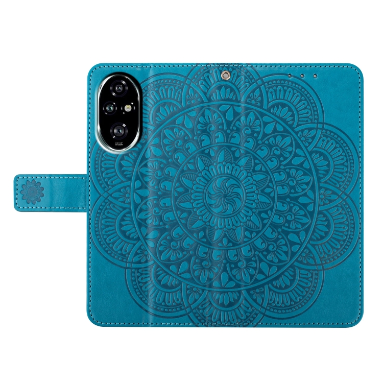Funda de Cuero con Relieve Floral para Honor 200 Pro (Azul)