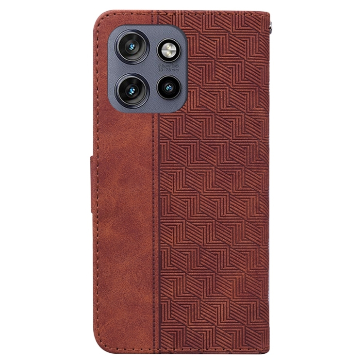 Funda de Cuero con Relieve Geométrico Global para Motorola Edge 50 Neo 5G (Marrón)