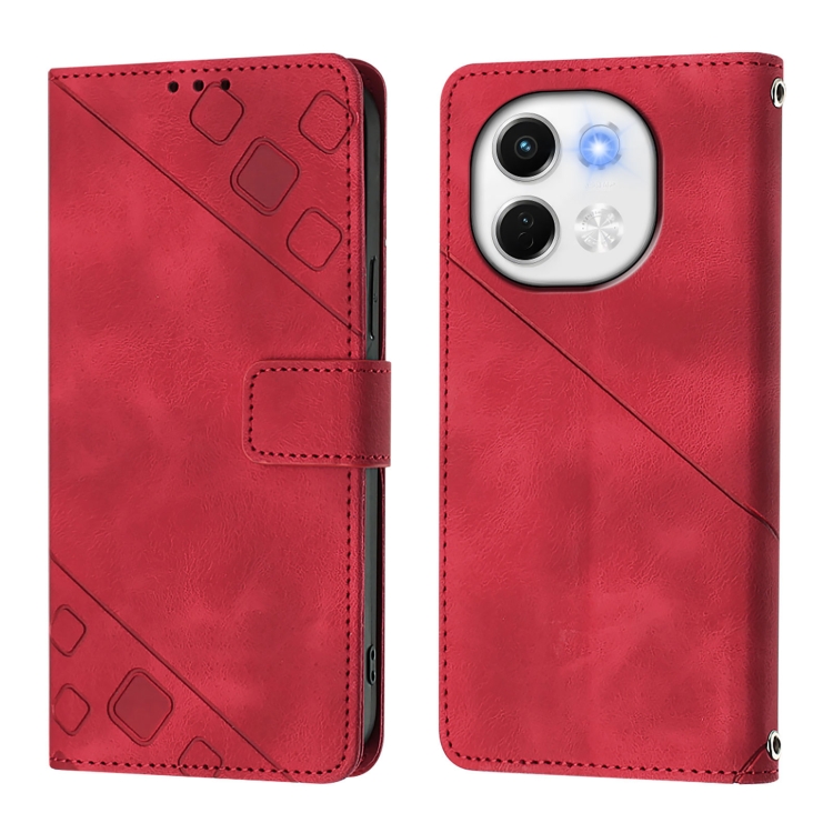 Funda de Piel con Relieve para Tecno Spark 30 5G y Pova 6 Neo 5G (Roja)