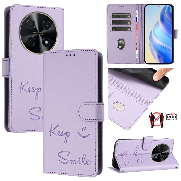 Funda de Cuero con Relieve Rfid para Huawei Nova 12I 4G Global Smile (Morado Claro)