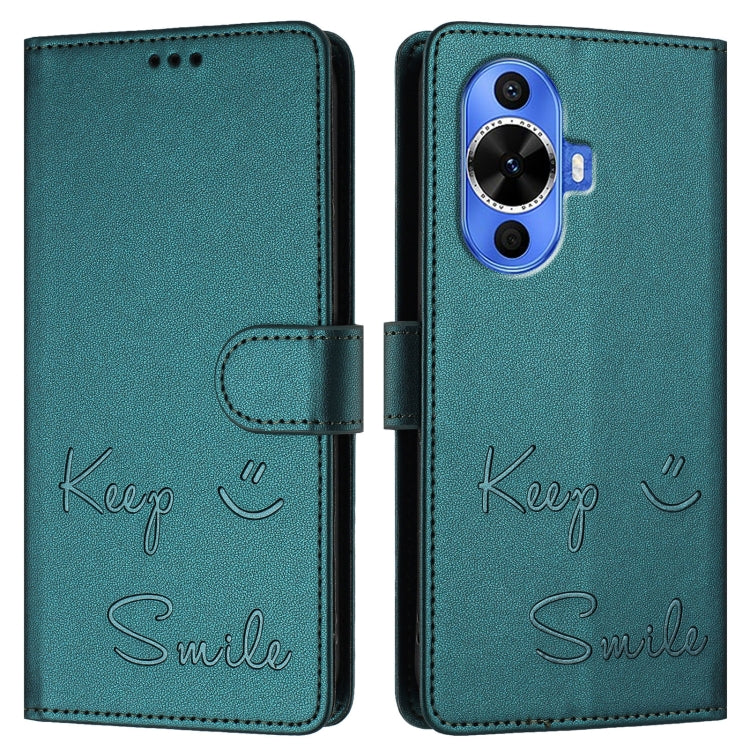 Funda de Cuero con Relieve RFID para Huawei Nova 12S 4G Global Smile (Verde Pavo Real)