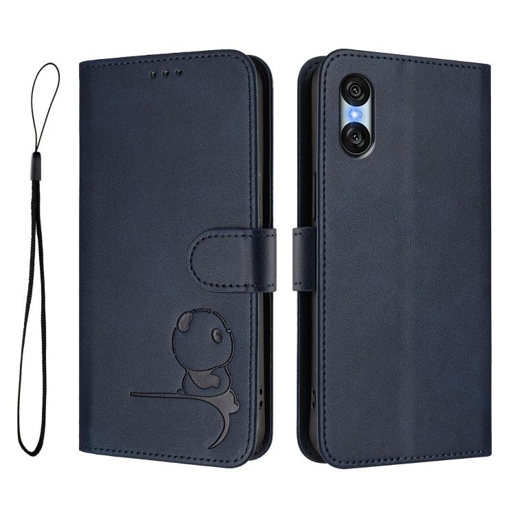 Funda de cuero con relieve RFID y cordón para Sony Xperia 10 VI (azul)