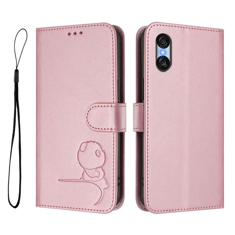 Funda de cuero con relieve RFID y cordón para Sony Xperia 10 VI (rosa)