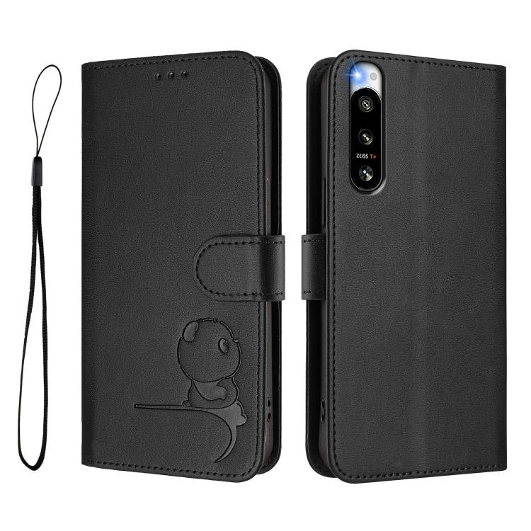 Funda de cuero con relieve RFID y cordón para Sony Xperia 5 IV (negro)