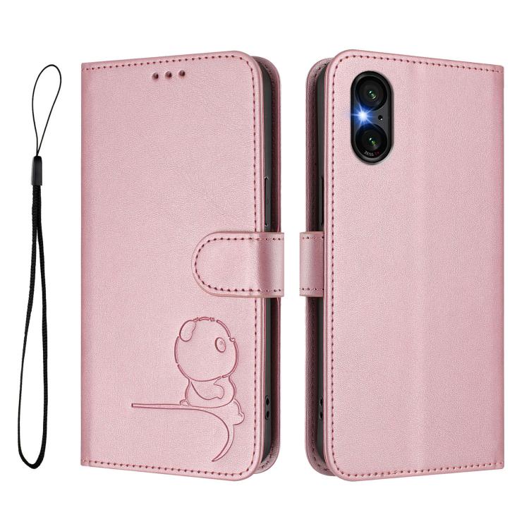 Funda de cuero con relieve RFID y cordón para Sony Xperia 5 VI (rosa)