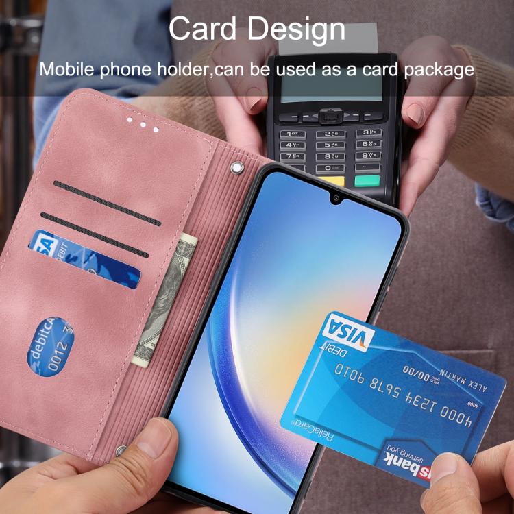 Funda de cuero con relieve y cordón para Samsung Galaxy A17 5G / A26 5G (rosa)