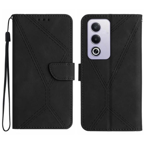 Funda de Cuero con Relieve y Costuras para Oppo A3 Pro 5G India/K12X 5G Global (Negra)