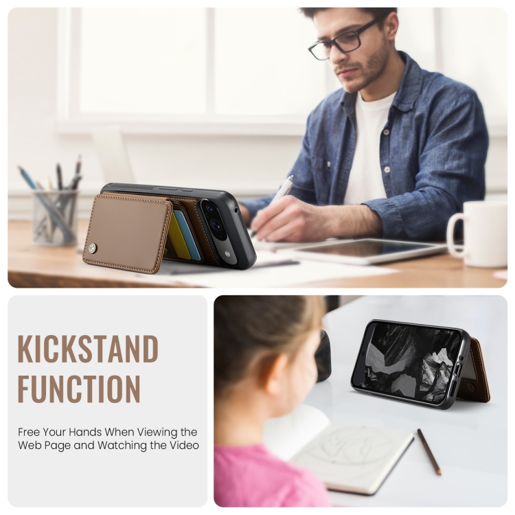 Funda de Cuero Jeehood J05 con RFID y Estilo Magnético para Google Pixel 9/9 Pro (Marrón)