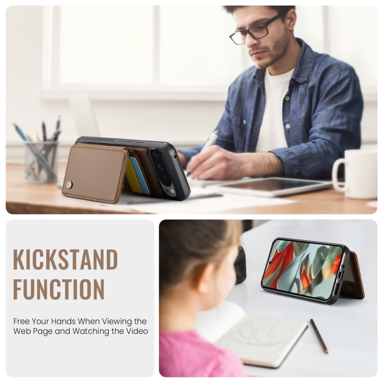 Funda de Cuero con RFID y Estilo Magnético Jeehood J05 para Google Pixel 9 Pro XL (Marrón)