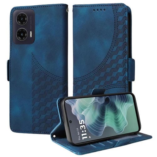 Funda de Cuero para Motorola Moto G35 con Rombos en Relieve y Estrellas (Azul)
