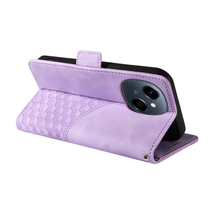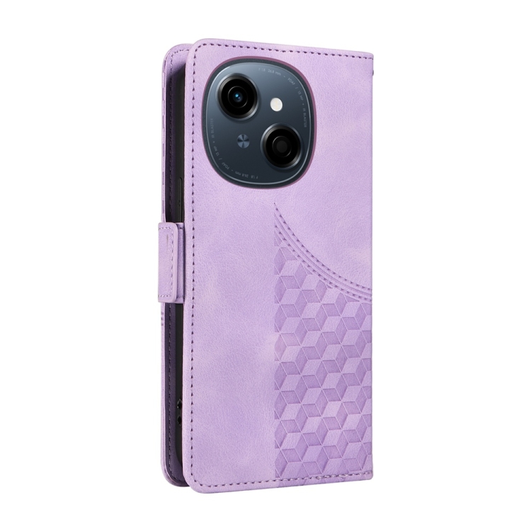 Funda de Cuero para Tecno Spark Go 1 / Pop 9 / Spark Go 2025 con Rombos y Estrellas (Morado)