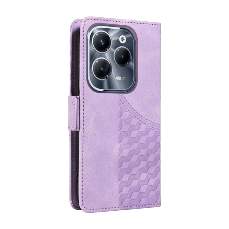 Funda de Cuero con Rombos en Relieve y Estrellas para Infinix Hot 40 y Hot 40 Pro (Morado)