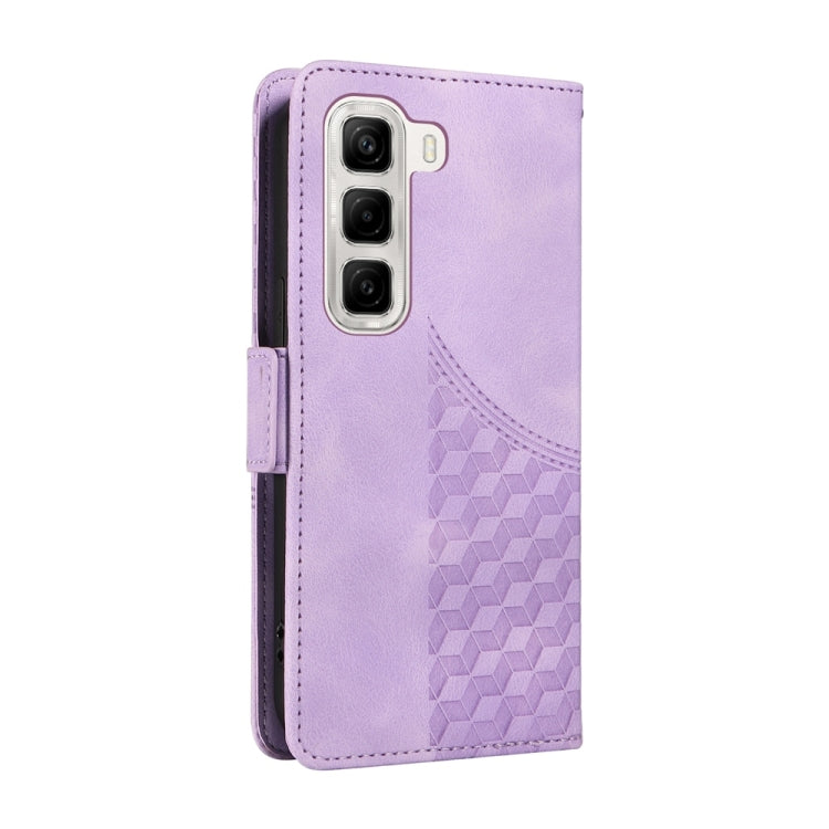Funda de Cuero con Rombos en Relieve y Estrellas para Teléfono Infinix Hot 50 4G (Morado)