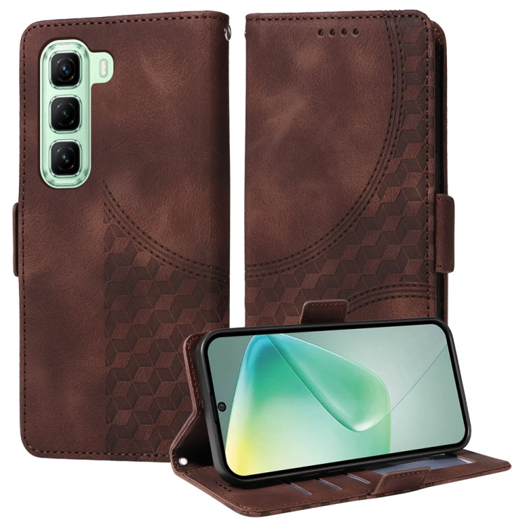 Funda de Cuero con Rombos y Estrellas para Infinix Hot 50 5G (Marrón)