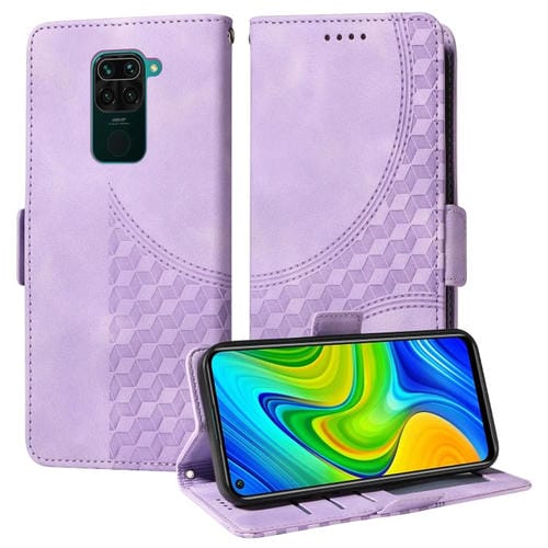 Funda de Cuero con Rombos y Estrellas En Relieve para Redmi Note 9 4G (Morado)
