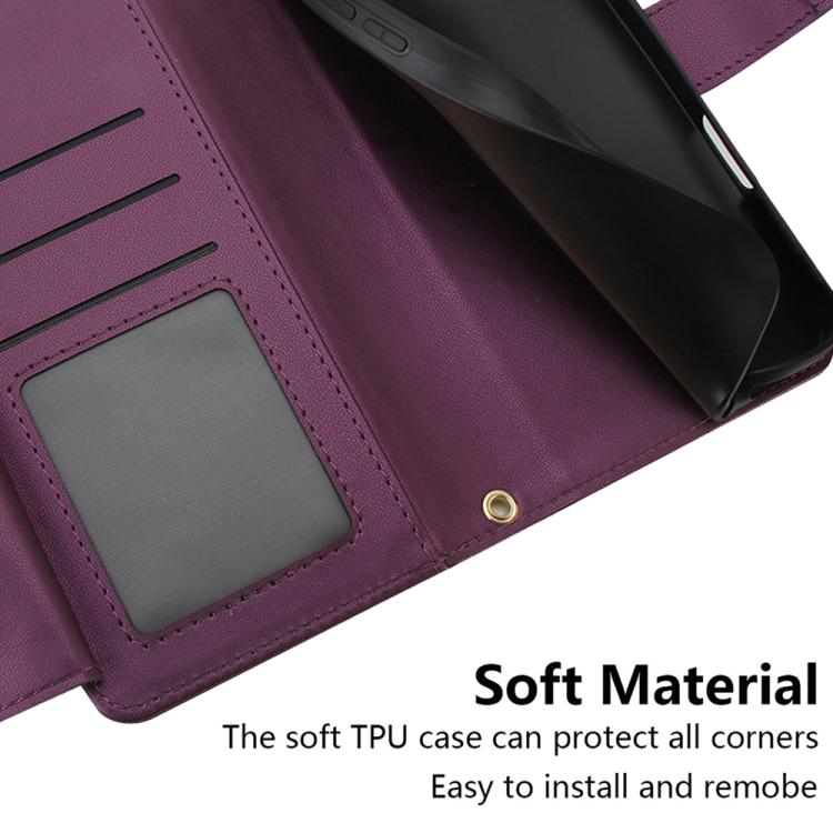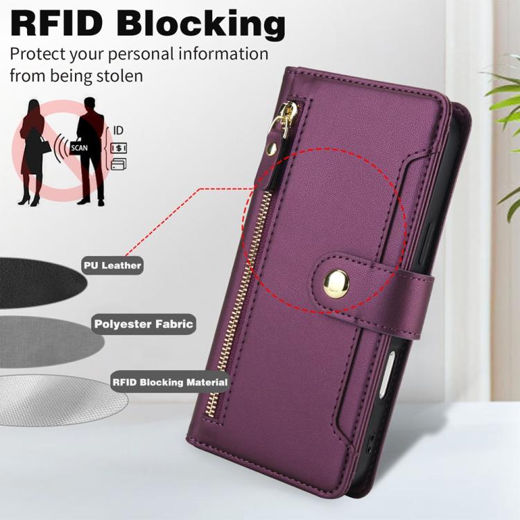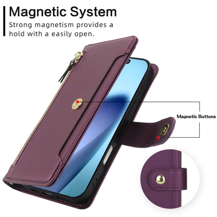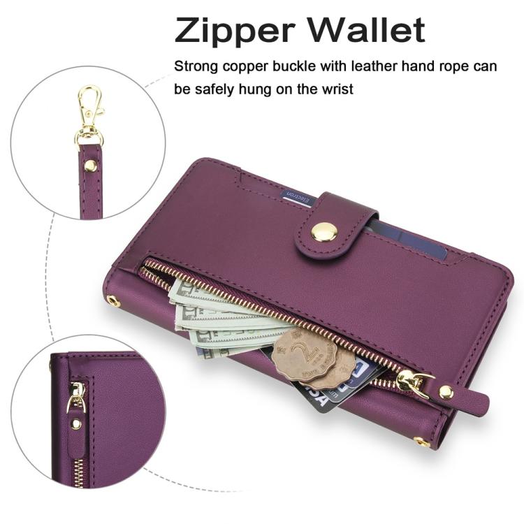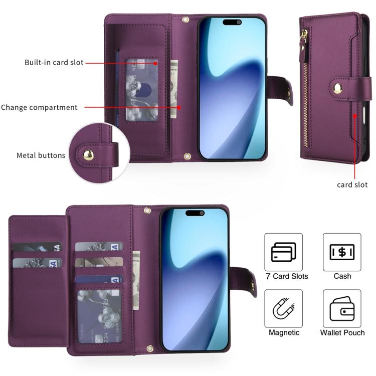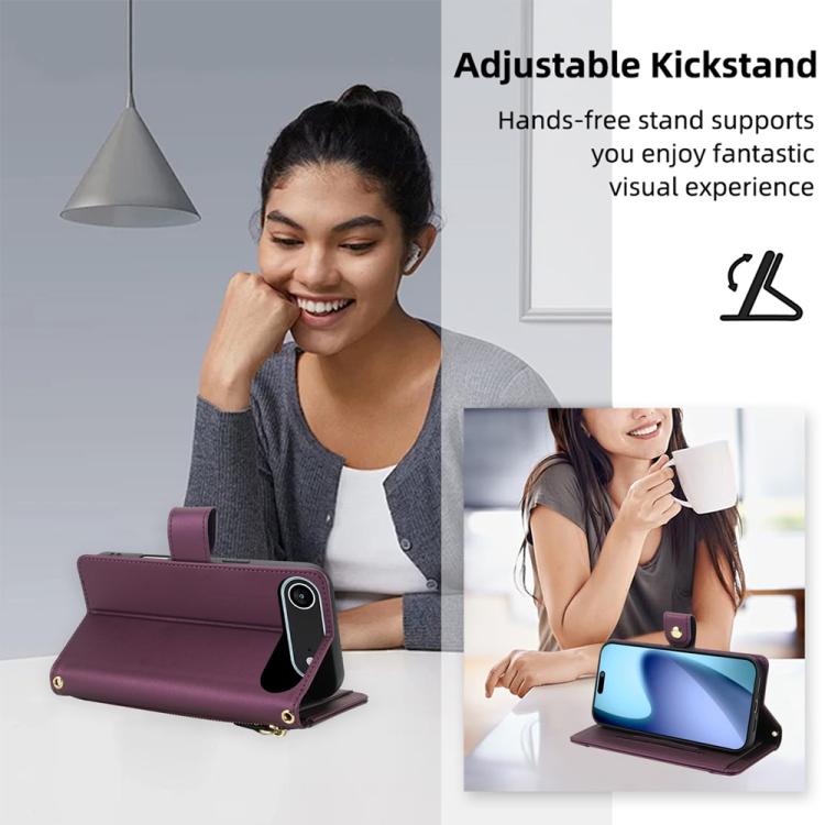 Funda de cuero con siete ranuras para tarjetas y cremallera para iPhone Air con cordón (morado oscuro)