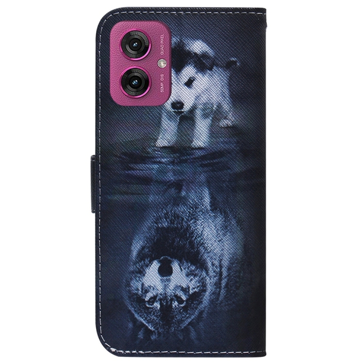 Funda de Cuero con Tapa para Motorola Moto G55 con Dibujo Colorido (Lobo y Perro)