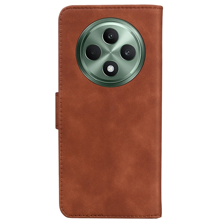 Funda de Cuero con Tapa de Color Puro con Tacto de Piel para Oppo Reno12 F 5G (Marrón)