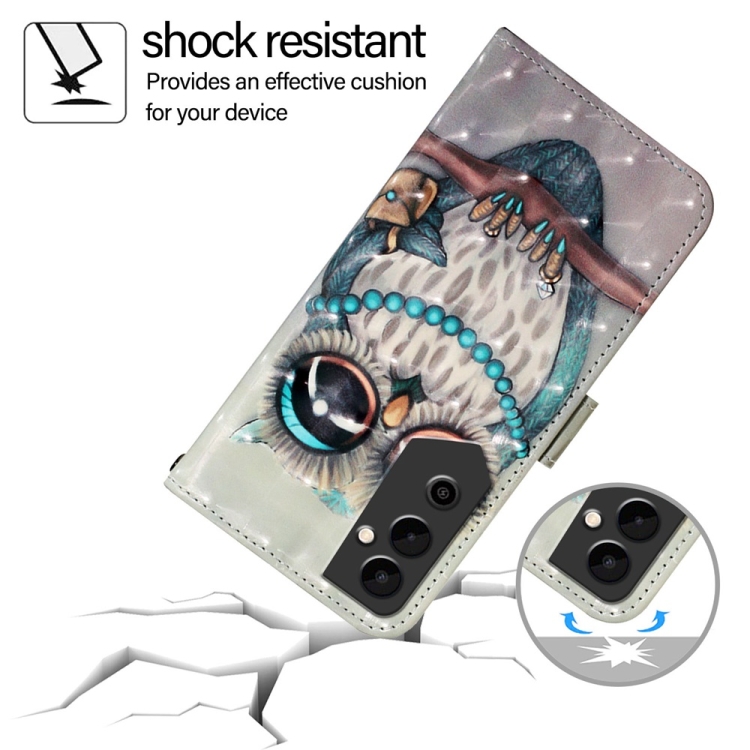 Funda de Cuero con Tapa Horizontal y Pintura 3D para Tecno Pova Neo 2 (Búho Gris)