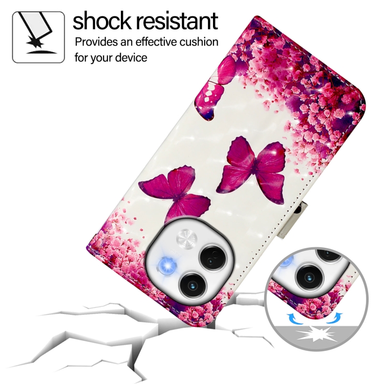 Funda de Cuero con Tapa Horizontal y Pintura 3D para Tecno Spark 30 5G/Pova 6 Neo 5G (Mariposa Rosa)