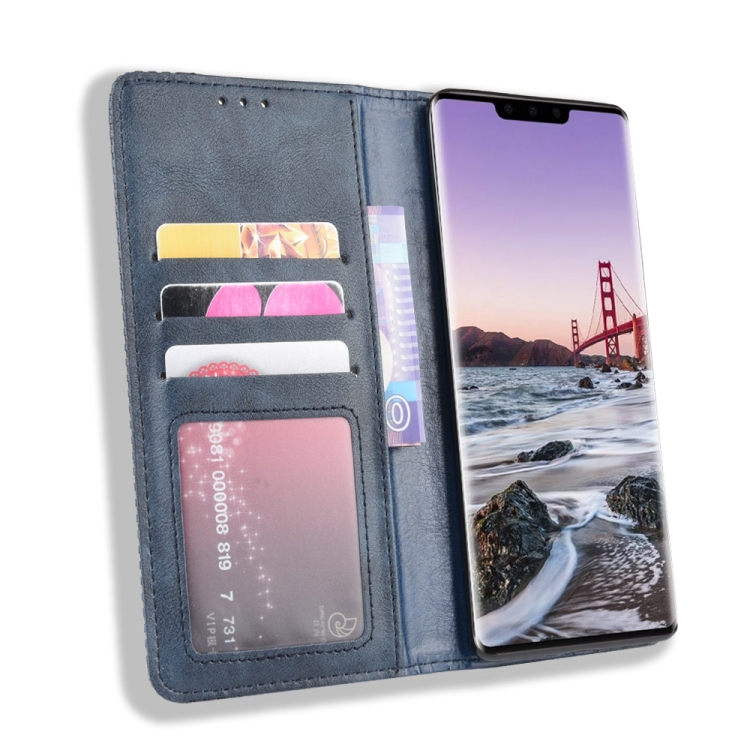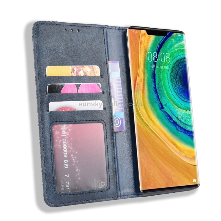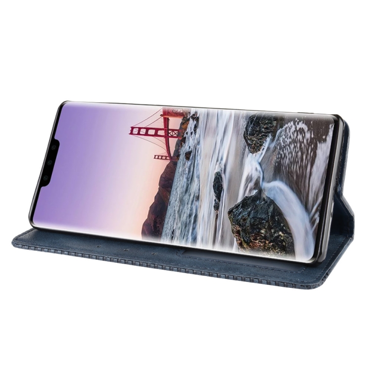 Funda de Cuero con Tapa Horizontal y Hebilla Magnética para Huawei Mate 30 Pro con Soporte y Ranuras (Azul)