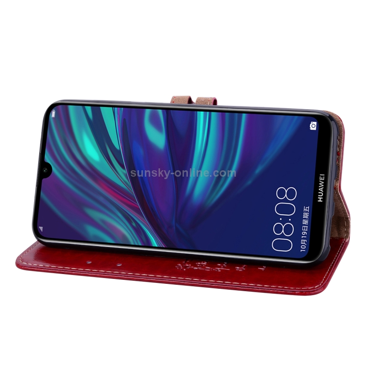 Funda de Cuero con Tapa Horizontal para Huawei Y7 (2019) con Soporte y Ranuras (Rojo)
