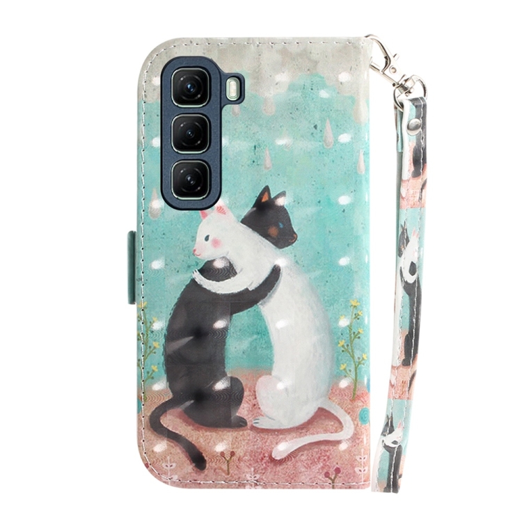 Funda de Cuero con Tapa Horizontal 3D para Infinix Hot 50 4G (Gato Blanco y Negro)
