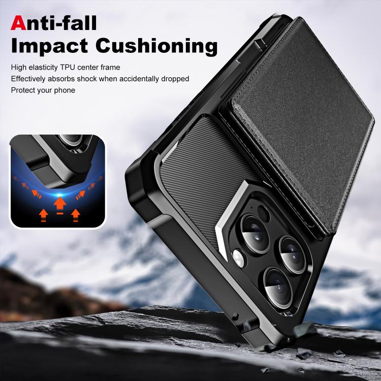 Funda de Cuero con Tapa Horizontal para iPhone 15 Pro con Tarjetero (Negro)