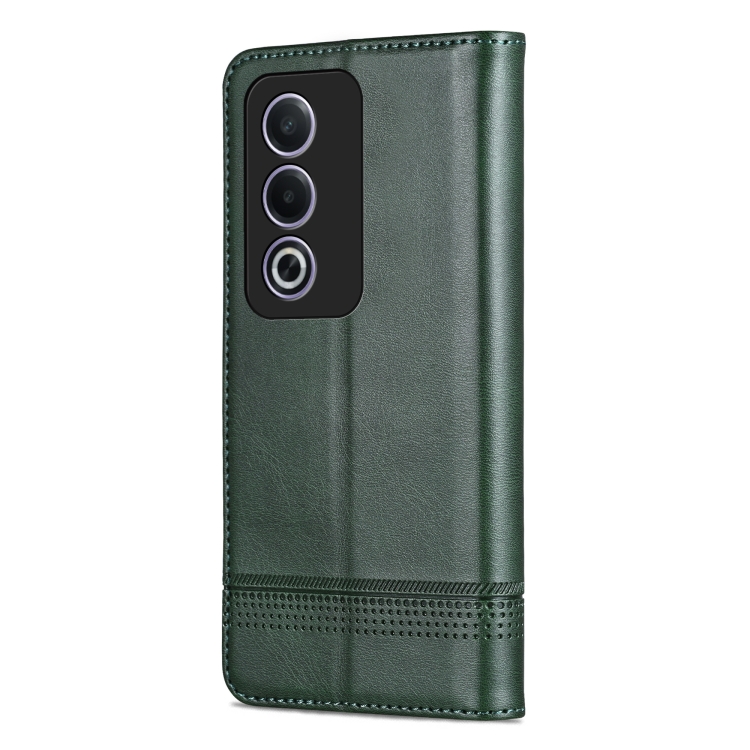 Funda de Cuero con Tapa Magnética con Textura de Piel de Becerro Azns para Oppo A3 Pro 5G Global (Verde Oscuro)