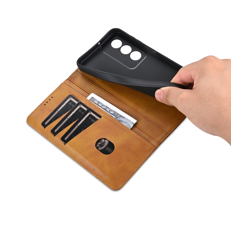 Funda de Cuero con Tapa Magnética con Textura de Piel de Becerro Azns para Oppo K12X 5G Global (Marrón Claro)