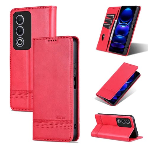 Funda de Cuero con Tapa Magnética con Textura de Piel de Becerro para Oppo A3 Energy/A3X 5G Azns (Rojo)