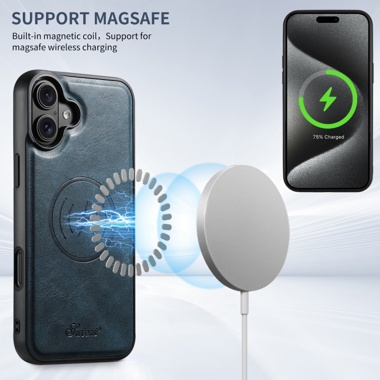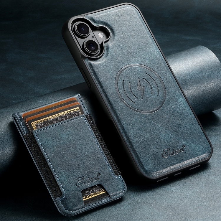 Funda de Cuero Suteni H17 Oil Eax con Tapa Magnética Desmontable para iPhone 16 (Azul)