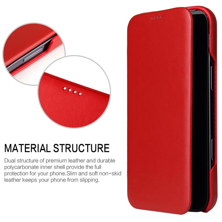 Funda de Cuero Fierre Shann para iPhone 16 Pro con Tapa Magnética (Rojo)