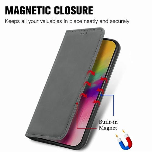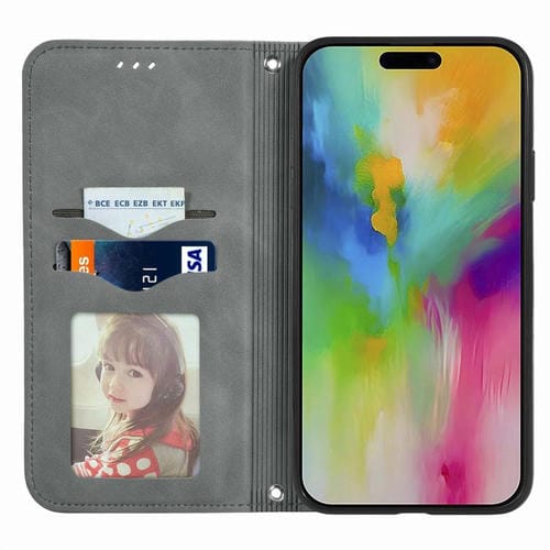 Funda de cuero con tapa magnética y diseño retro para iPhone 17 (gris)