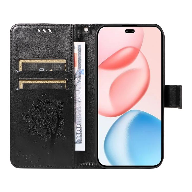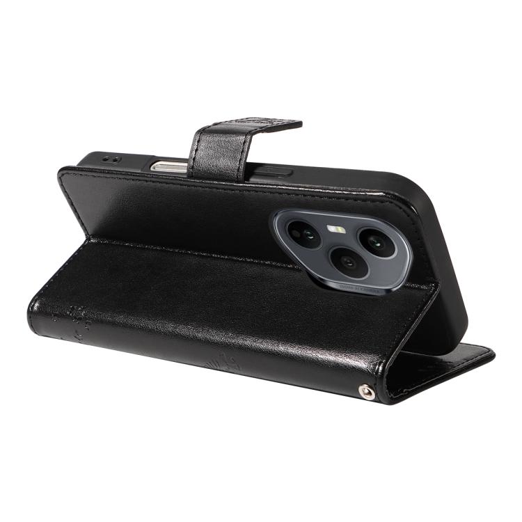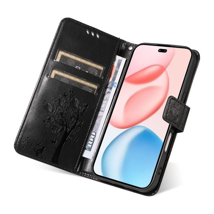 Funda de cuero con tapa para Honor 400 Pro Global (160,8 mm), diseño de árbol y gato (negro)